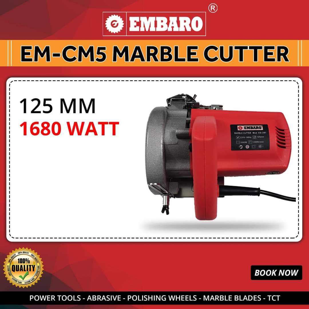 Embaro EM-MC-CM5 | Marble Cutter | 5 In. | 125mm | 1680W | 11000 RPM | Diamond Blade | Spindle Lock
