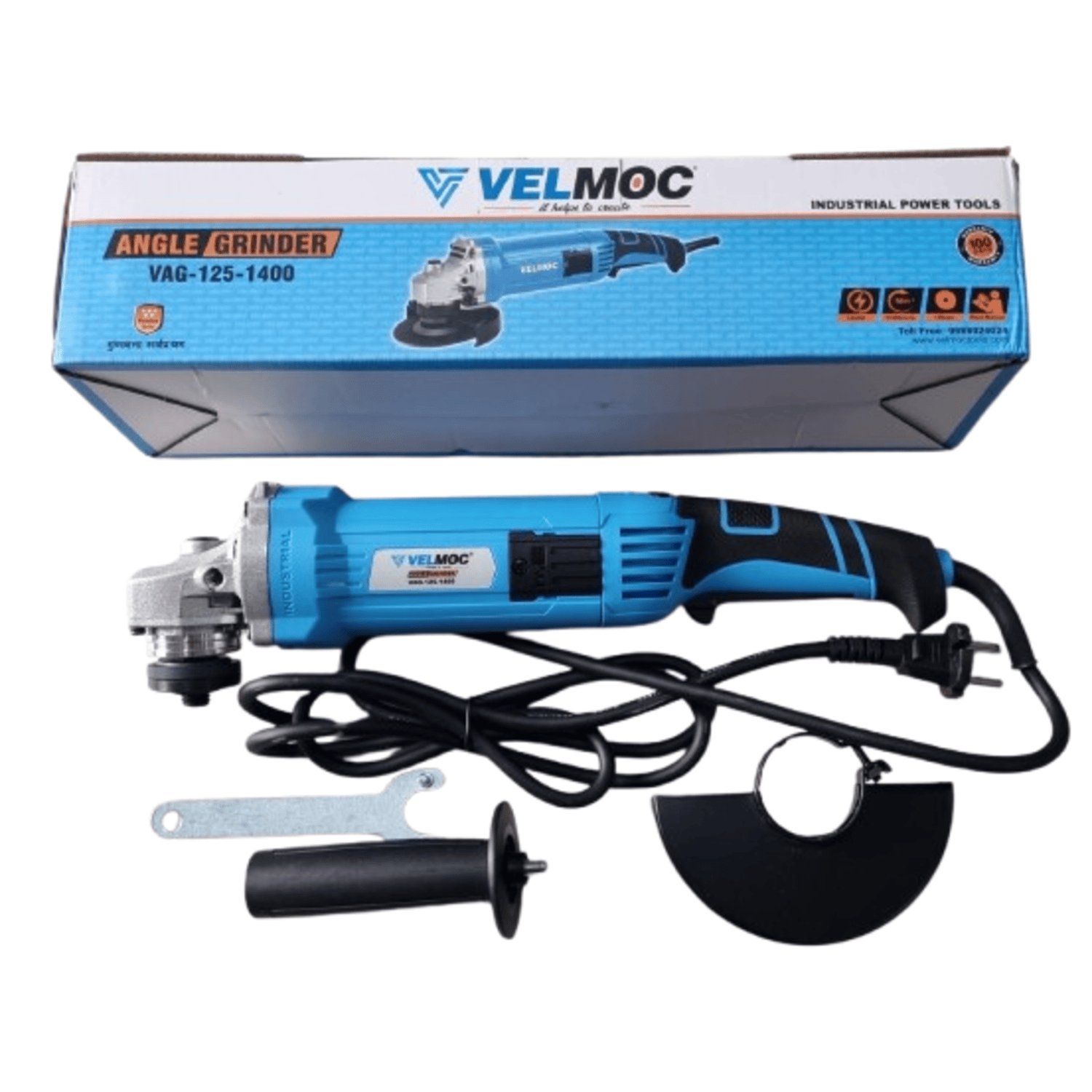 Velmoc VAG-125-1400 | Angle Grinder | 5 in. | 125mm | 1400W | 11000 RPM | Toggle Switch | Anti Vibrational Side Handle | Heavy Duty | Rough and Tough